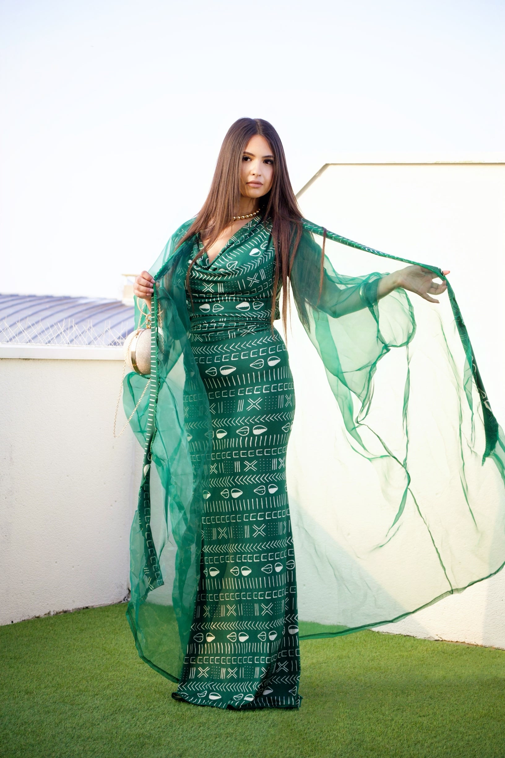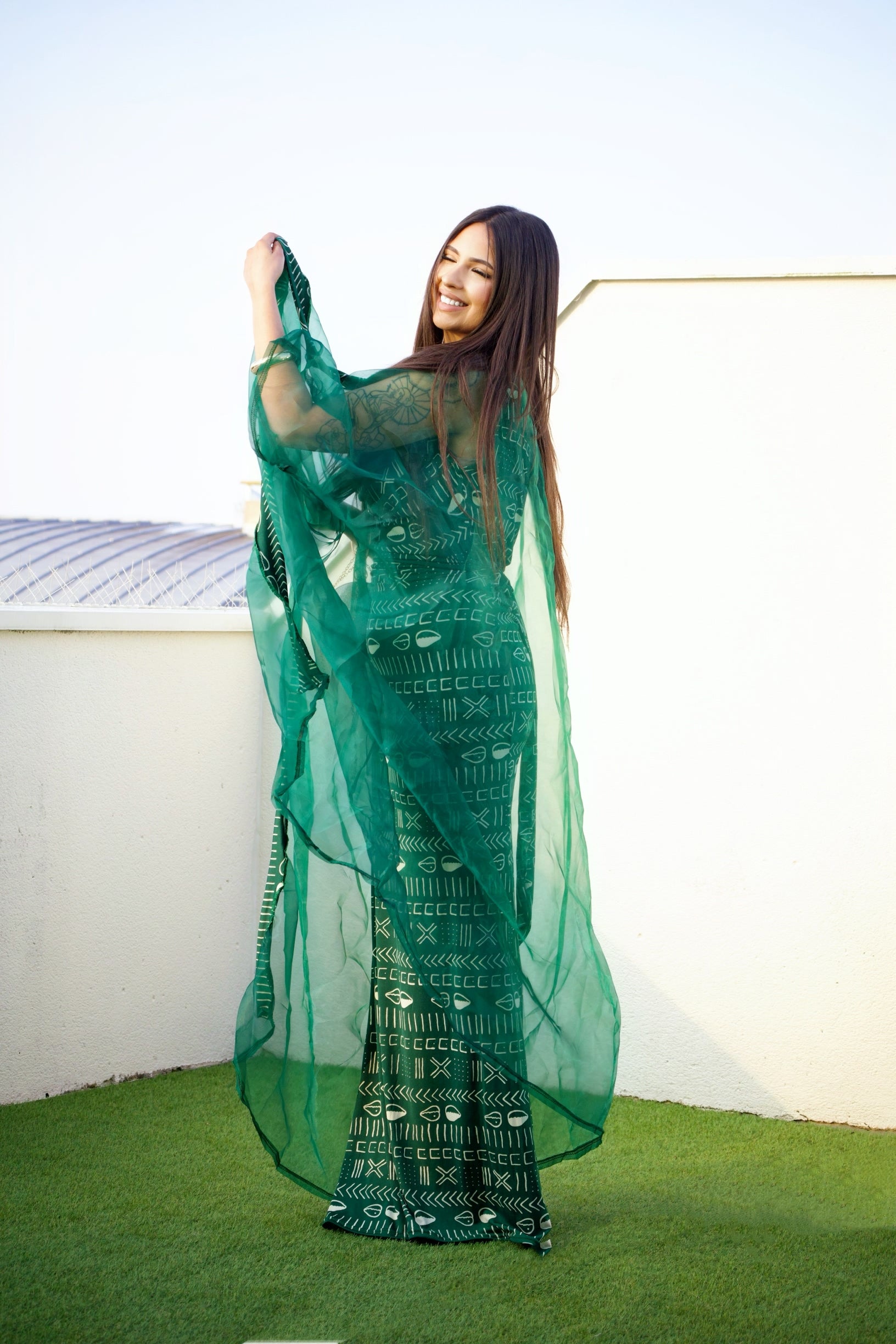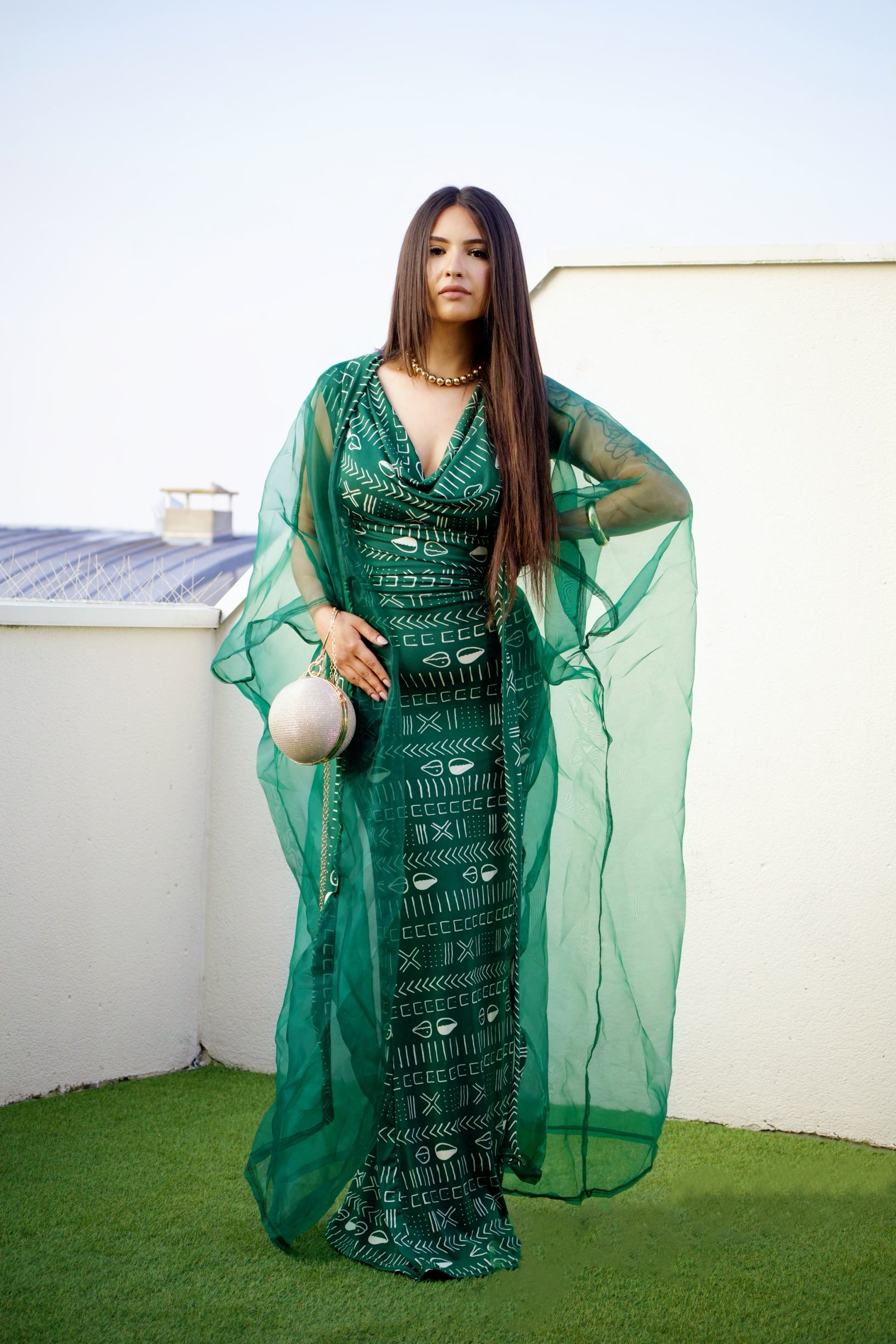 C’est une robe pensée comme le vêtement d’une reine invisible, qui gouverne dans l’ombre. Elle représente la majesté sans couronne, la noblesse silencieuse.